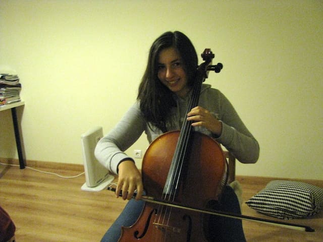 It finally arrived yesterday! Idil has a new cello now thanks to your contributions. With the raised amount together with the money Idil and I had, selling the old cello we managed to pay the cello, a good bow and a good bridge for the cello (2000 euros).