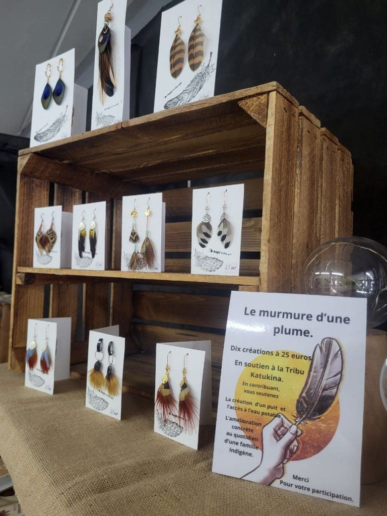 “Le murmure d’une plume” sell ten creations for 25 euro to support the Katukina tribe, vari vino.